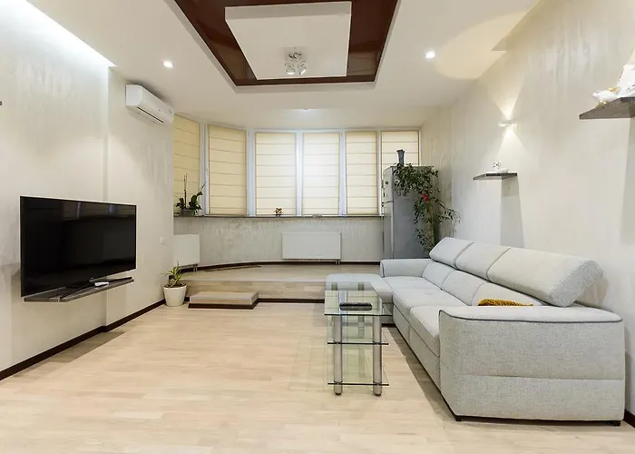 Apartment On Dragomirova offers views of the city and a location approximately a 10-minute ride from National Opera of Ukraine. Guests will enjoy having Wi-Fi, and those with cars will appreciate complimentary private parking on site.